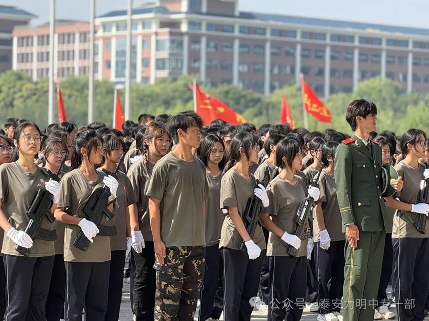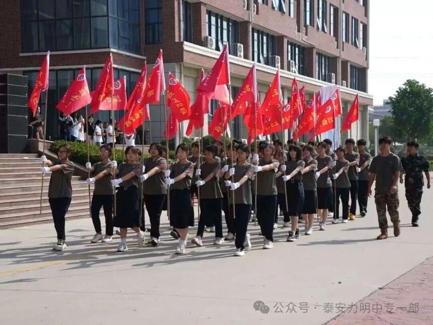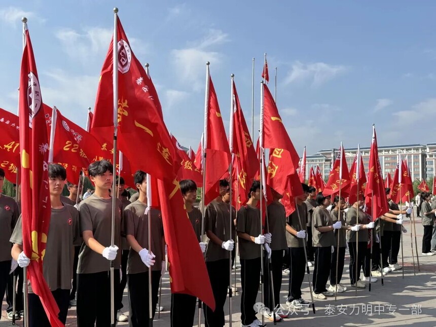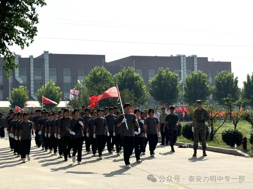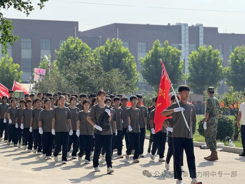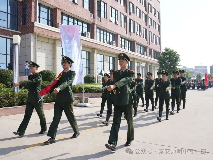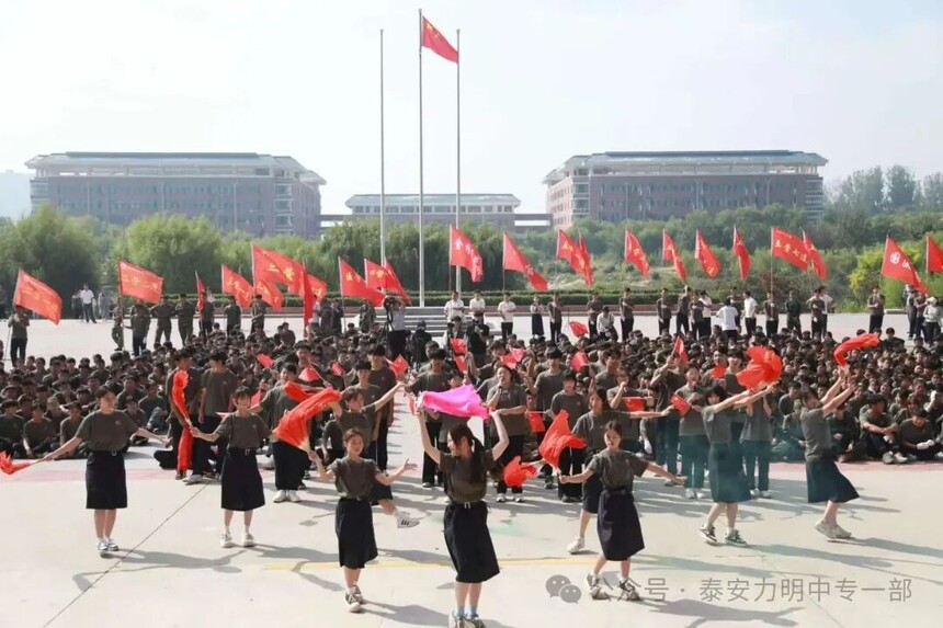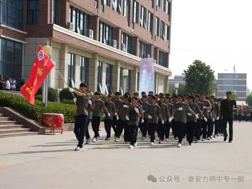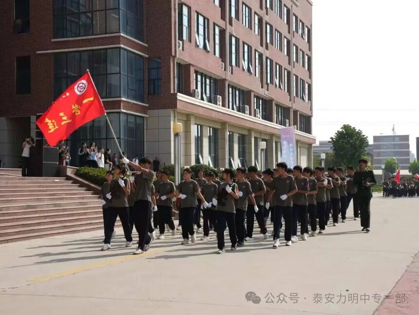 拿第一、得先进!力明中职一部连续四年在军训中获评优秀营队时间:2025-09-10 金秋九月,硕果飘香。9月10日上午,山东力明教育集团2025级中职新生军训成果汇报暨开学典礼在综合楼广场隆重举行。力明教育集团董事长王力一教授和集团有关领导以及2025级全体中职新生共同参加大会。